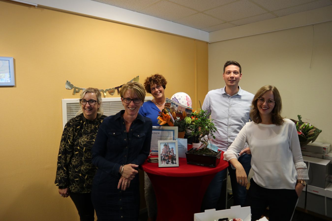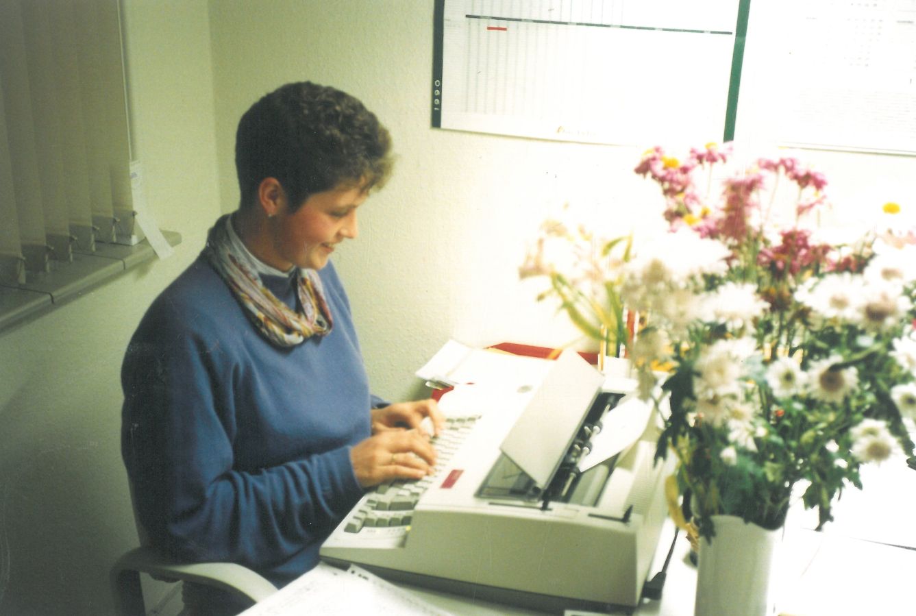 "Al snel bleek dat er versterking nodig was in mijn piepkleine kantoortje. Eerst zijn er wat tijdelijke mensen geweest om mij te helpen, maar gelukkig schreef zich al snel een jonge schoolverlaatster uit St. Kruis in op zoek naar een baan in haar vakgebied. Anneke kwam op gesprek en is gelijk dezelfde middag nog in het diepe gegooid. Zo ongecompliceerd was 1992! Het kleine kantoortje werd na een verbouwing in 1994 iets minder klein, in elk geval groot genoeg voor 2 werkplekken. Dat was prettig want inmiddels werd onze eerste computer geïnstalleerd (opstarten ging gepaard met veel gepiep en gekraak) en moest er extra versterking bij komen omdat ik zelf een paar maandjes op lage versnelling ging door de komst van ons eerste kindje, Manon. Voor Anneke was dat ook een bijzondere tijd: zakelijk en privé liep ongelooflijk door elkaar heen, ook voor haar.
